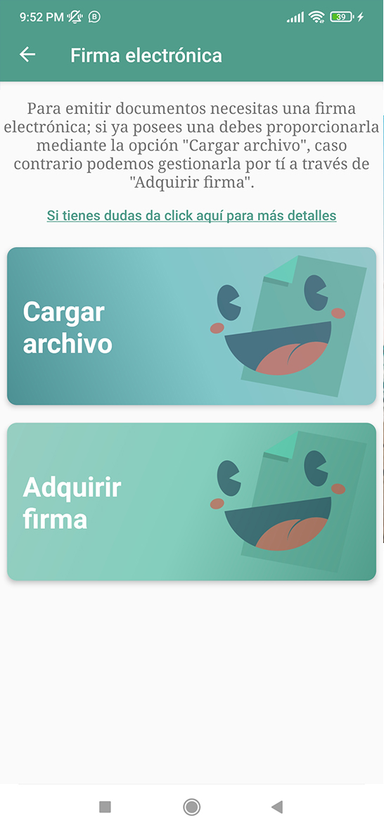 Carga tu firma electrónica y clave. Si aún no tienes este requisito nosotros te acolitamos facilito y por WhatsApp.